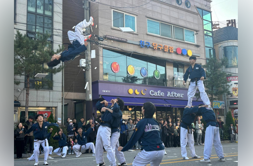 거리 위 태권무 공연...대경대 태권도과, '평택 에브리원 축제'서 금상